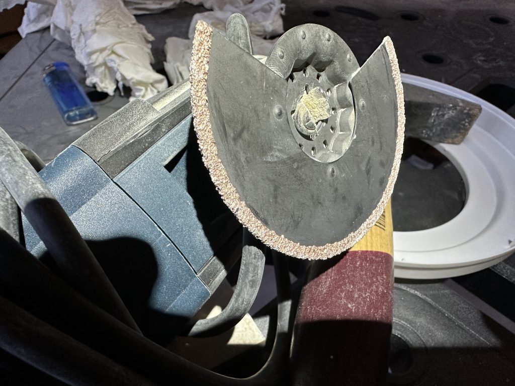 Heute habe ich angefangen im Duschzimmer die Fugen zu säubern. Um groben Fliesenkleber aus den Fugen (meißt im Bereich des Nivelliersystems) nutze ich eine Scheibe von Bosch für das Multitool.