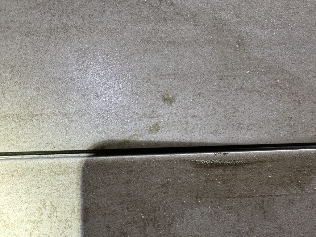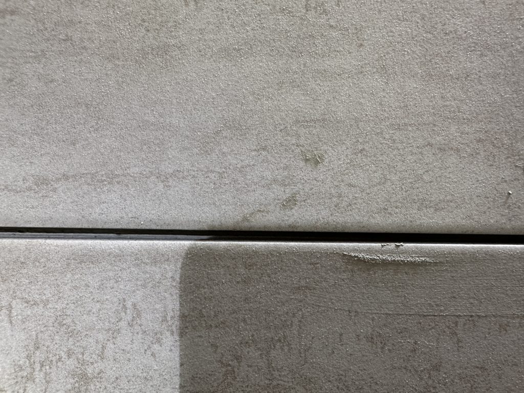 Dann müssen an der Fliese die Fliesenkleber-Reste herunter. Ausgangszustand als Beispiel. In diesem Fall auch ohne Technik den Kleber zu sehen.